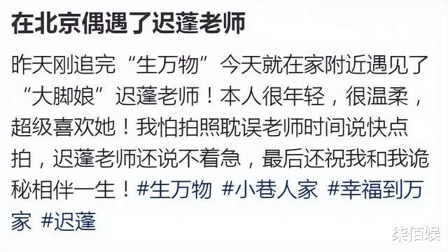 被认出的迟蓬很温柔的答应了网友合影要求,而对于担心拍照耽误她时间的网友,迟蓬老师还暖心安慰说不着急。